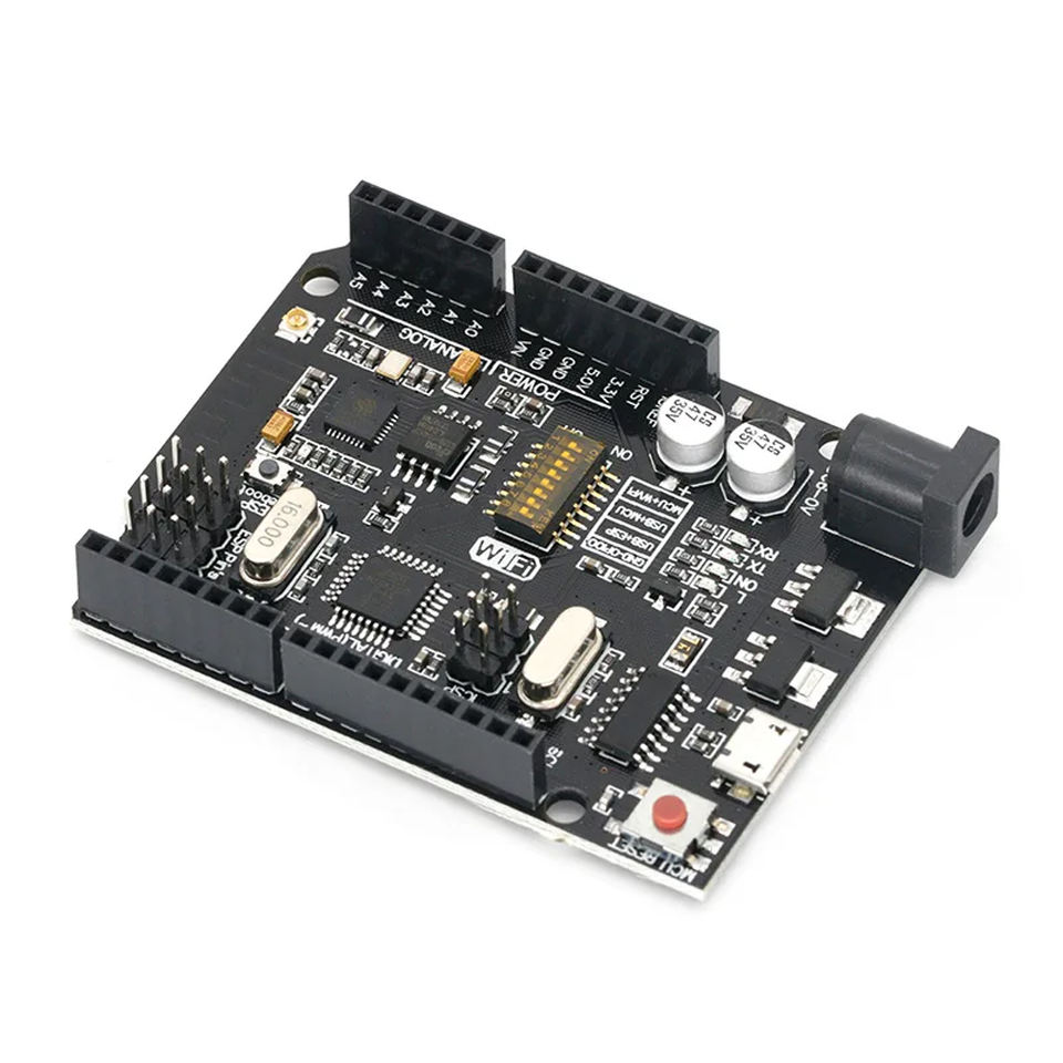 UN O + WiFi R3 ATmega328P + ESP8266 CH340 (mémoire 32 Mo) 6V-9V USB-TTL CH340G pour carte de développement WeMos One