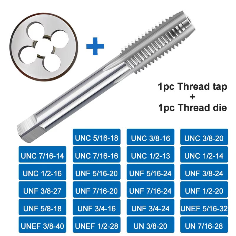UNC UNF UNEF Jeu de forets à main à filetage droit 2 pièces Cobalt HSS Coupe-fil Cobalt Outils à main pour perceuse Machine à tarauder Die