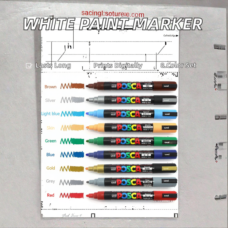 Marqueur de peinture à pointe plate en plastique UNI POSCA, encre acrylique permanente 0,7 mm, 8 couleurs, surligneur blanc effaçable pour tissu, commande en gros