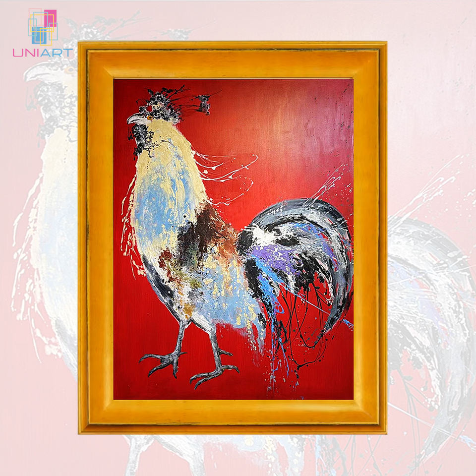 UNIART Coq créatif Portrait peinture à l'huile pur à la main fauvisme œuvre personnalisée peinte acrylique peinture à l'huile décoration murale