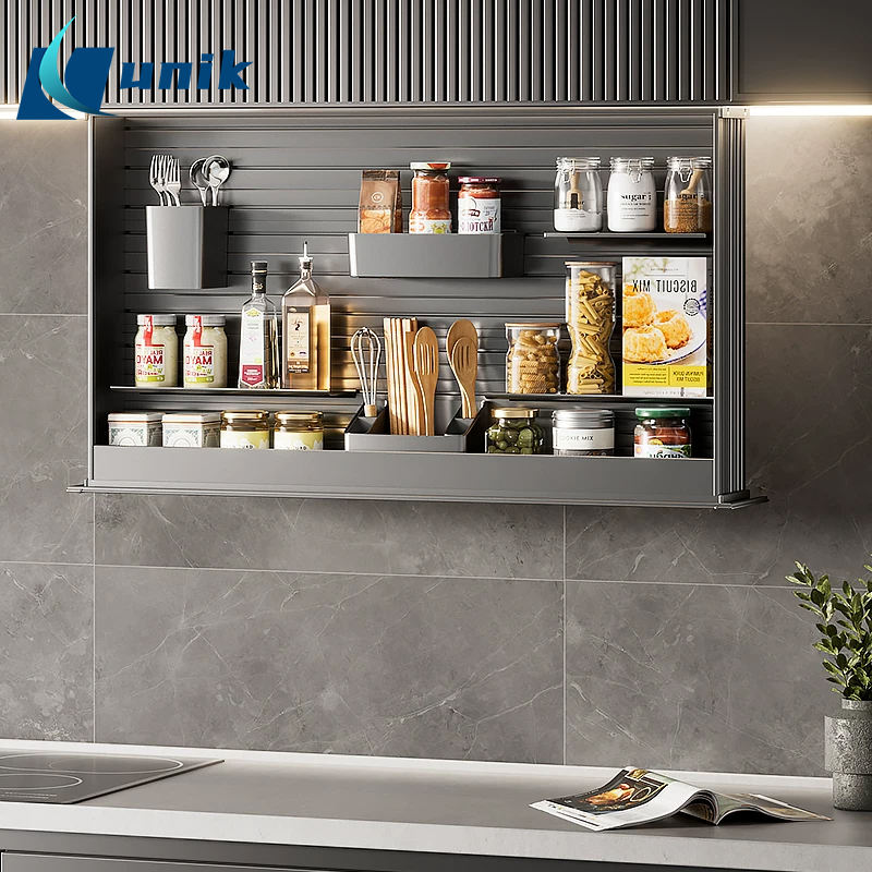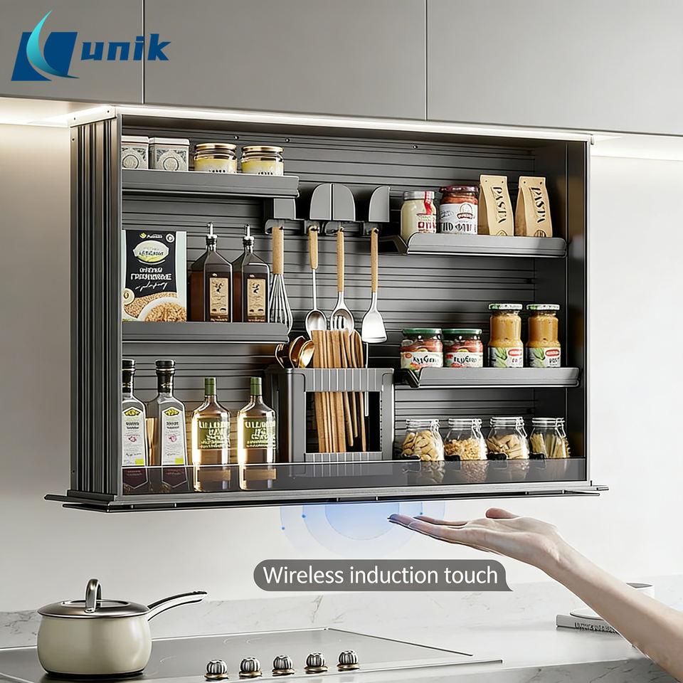 Système de levage intelligent UNIK en alliage d'aluminium, unités de rangement suspendues modulaires pour meubles de cuisine, armoires, vaisselle et épices, avec levage électrique