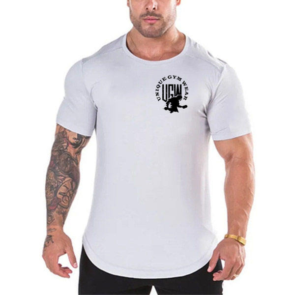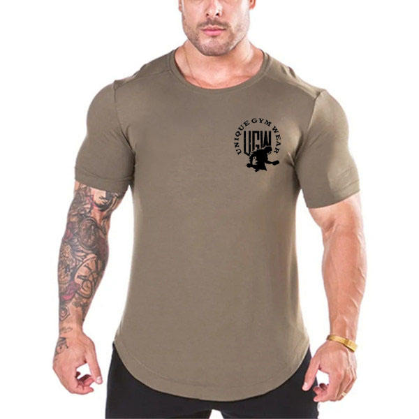 UNIQUE APPAREL T-shirts décontractés pour hommes à manches courtes, coupe ajustée, respirants, séchage rapide, écologiques, teints en pièce, en Spandex/Coton, avec motif sur le devant
