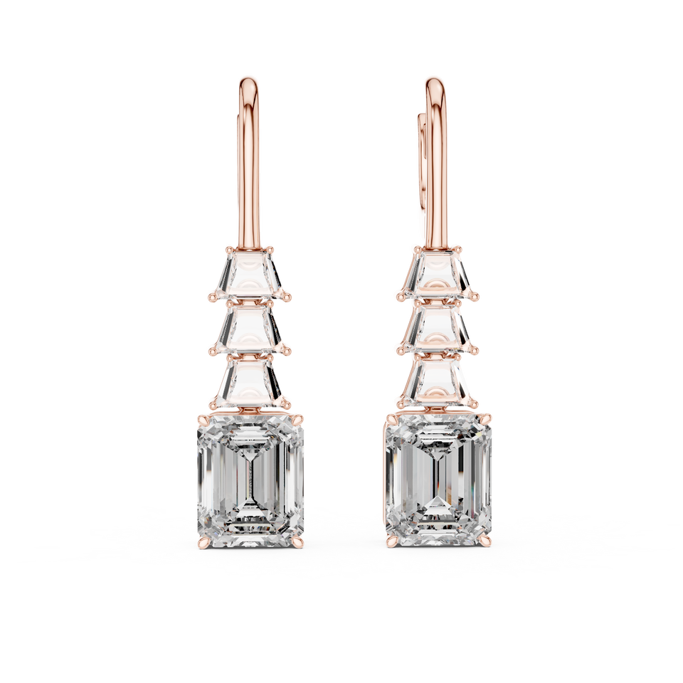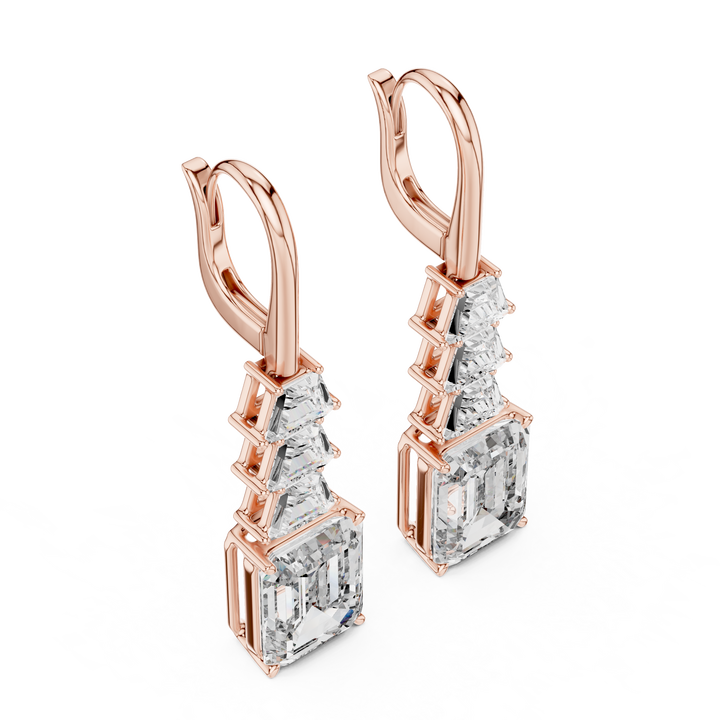 Ensemble UNIQUE DANGLERS en or rose 18 carats plaqué rhodium, diamants de laboratoire certifiés IGI taille trapèze, pour usage quotidien et événements glamour