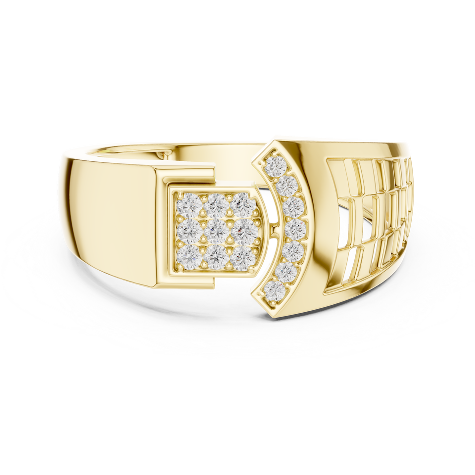 Bague UNIQUE DYNASTY EDGE en or jaune 18 carats sertie d'un diamant de laboratoire taille ronde, idéale pour mariage, fiançailles et usage quotidien pour homme.