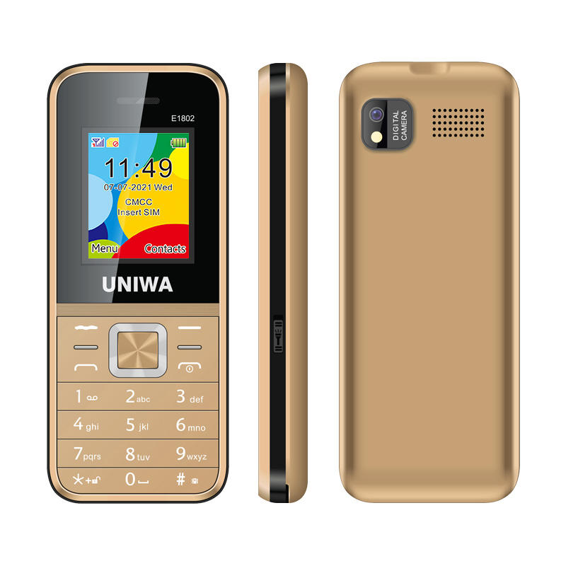 Téléphone portable UNIWA E1802 à faible coût, barre de support radio sans fil double SIM de 1.77 pouces, téléphone de fonction