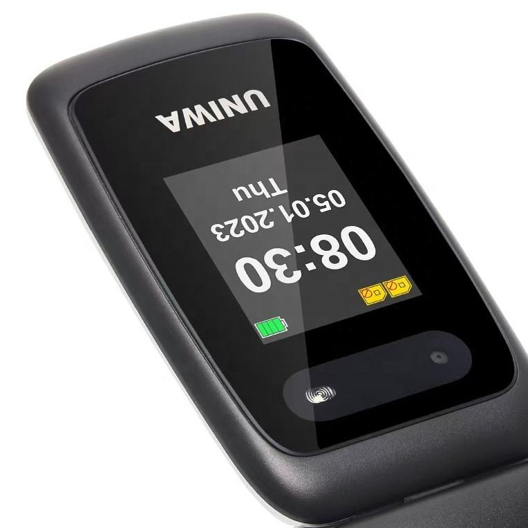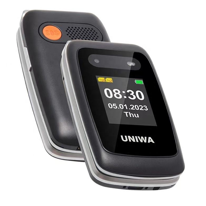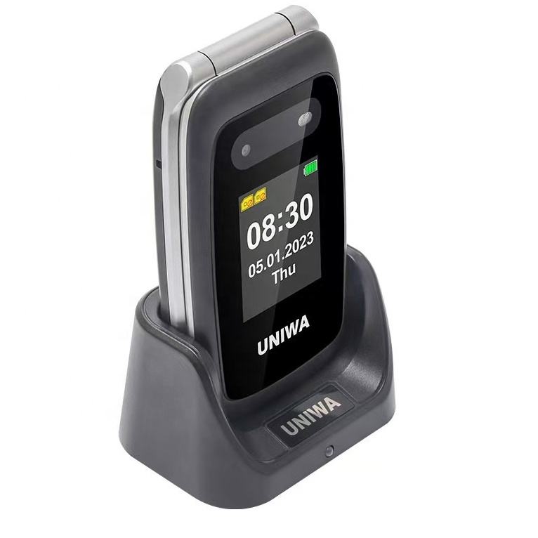 Téléphone à clapet double écran UNIWA V202T pour seniors avec bouton SOS, grandes touches, téléphone 4G pour malentendants avec base de charge
