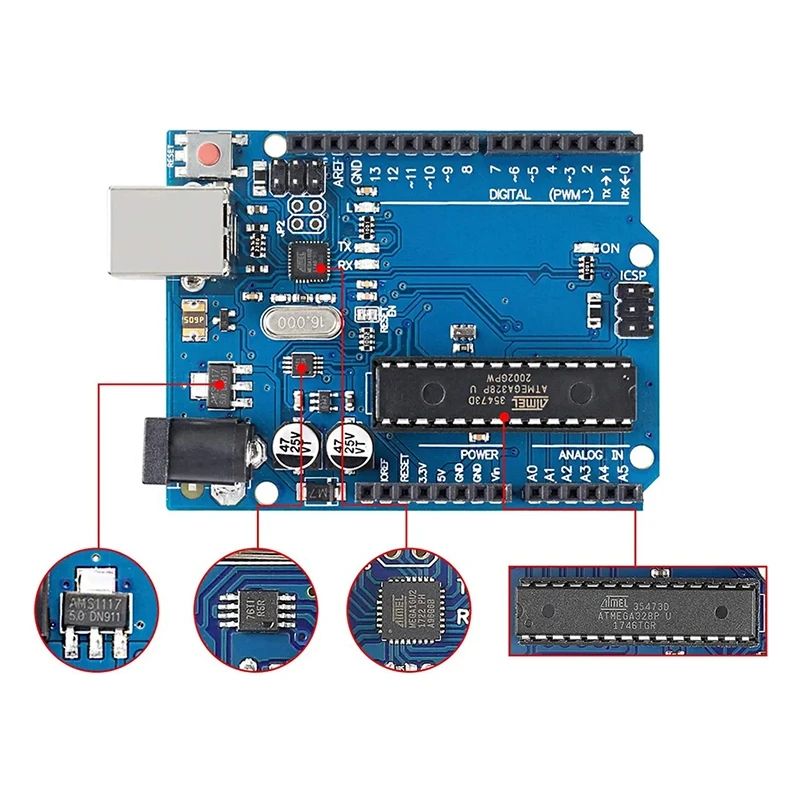 Boîte officielle UNO R3 ATMEGA16U2 UNO+WiFi R3 Original ATMEGA328P Chip CH340G pour carte de développement Arduino UNO R3 WeMos ESP8266