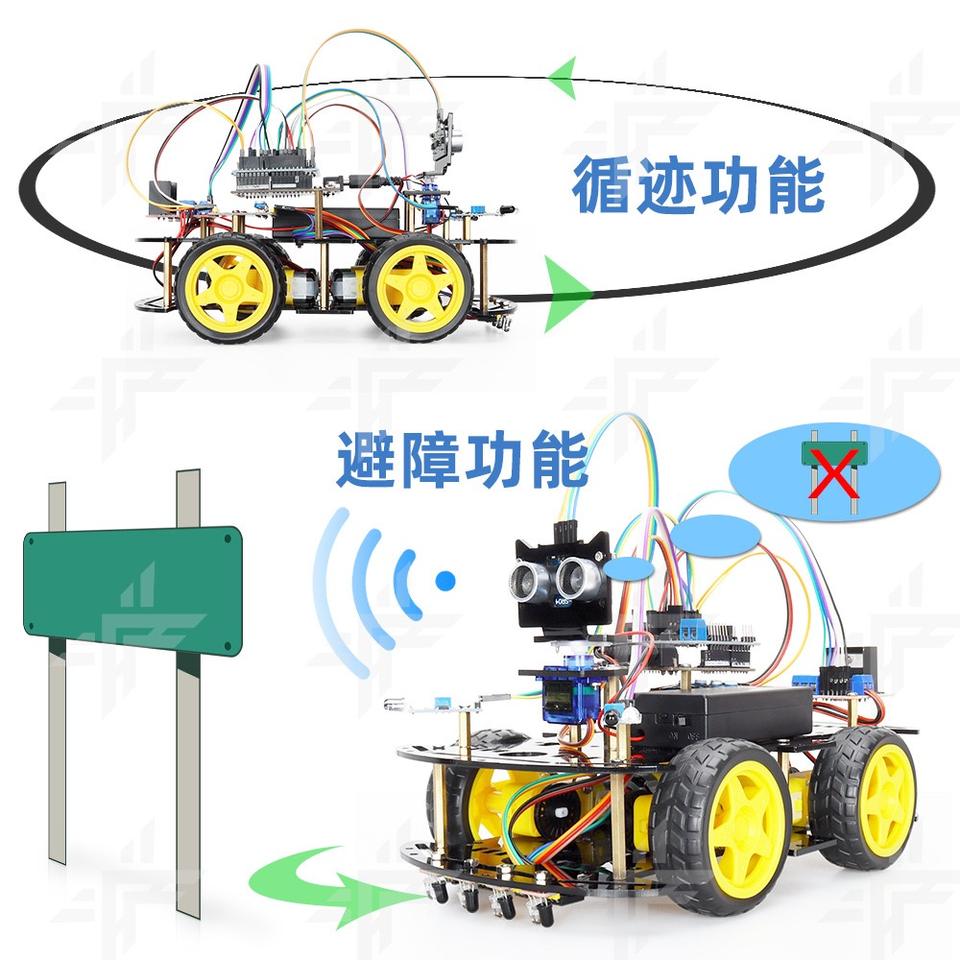 Kit de voiture intelligente UNO R3 à évitement d'obstacles par ultrasons et infrarouge, compatible avec le suivi de colis et la programmation Arduino