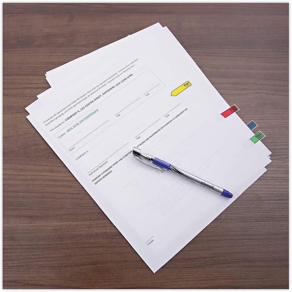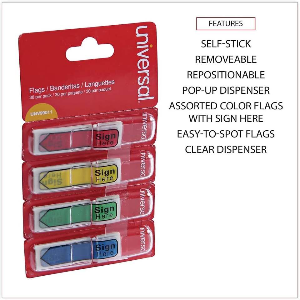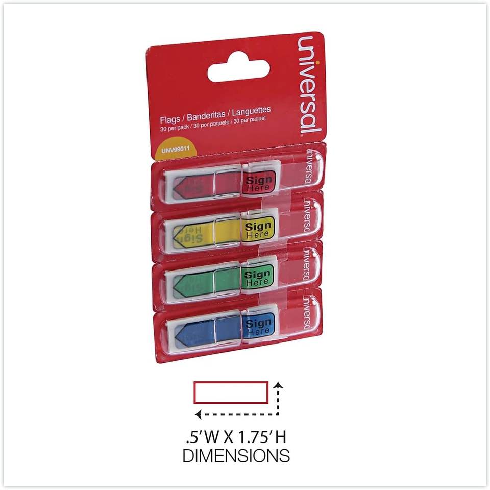 UNV99011 Deluxe 0,5 pouces X 1,75 pouces Drapeaux de signalisation universels avec flèches et messages, couleurs assorties (120/paquet)