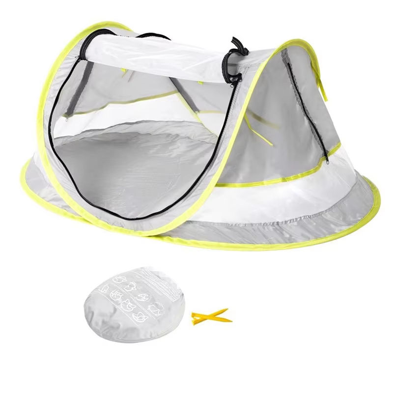 Tente de plage pliable pour enfants UPF 50+ avec moustiquaire, lit mobile et protection solaire pour bébé