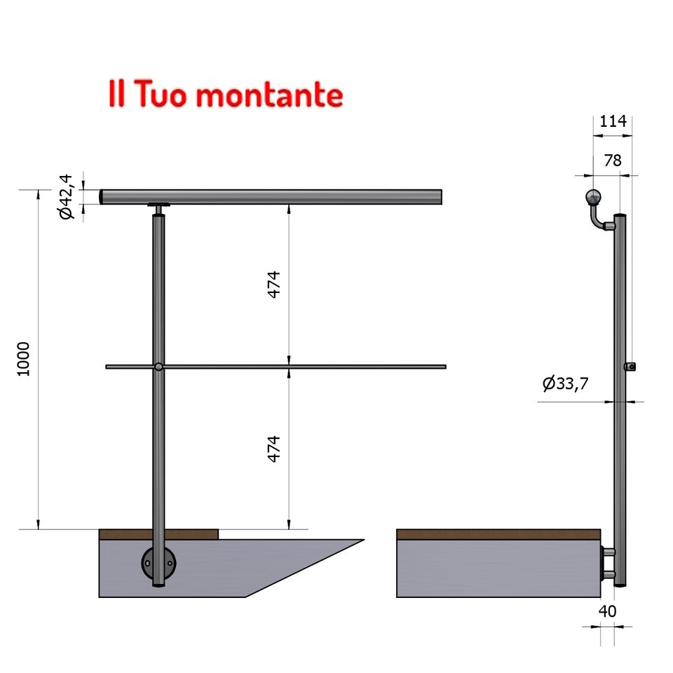 MAIN COURANTE DROITE Ø 33.7 OFFSET Satin AISI 304 Acier Inoxydable Traverse Fixation Latérale Hauteur SKU Balustrades Mains Courantes
