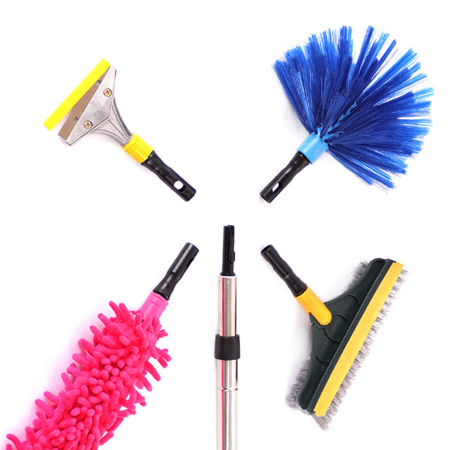 Tige télescopique à accouplement rapide en acier inoxydable de longueur personnalisée UPSILON, avec poignée en PVC écologique, pour le nettoyage ménager