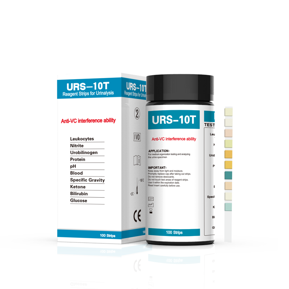 URS-10T 10 paramètres bandelettes de test d'urine à usage domestique bandelettes d'analyse d'urine bandelettes d'infection des voies urinaires pour clinique et hôpital