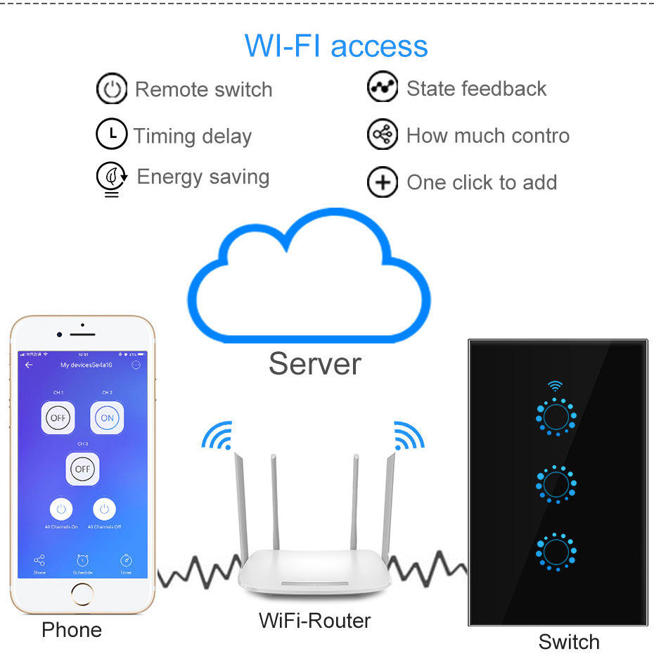 US AU 1/2/3 Gang Smart WiFi Switch Télécommande Verre Écran Tactile Interrupteur Mural Tuya / EWeLink App