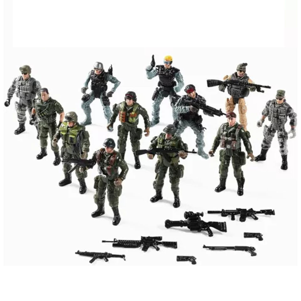US Army Men and SWAT Team Toy Soldiers Action Figures Set de jeu avec armes militaires Accessoires pour enfants Garçons Filles, 12Pcs