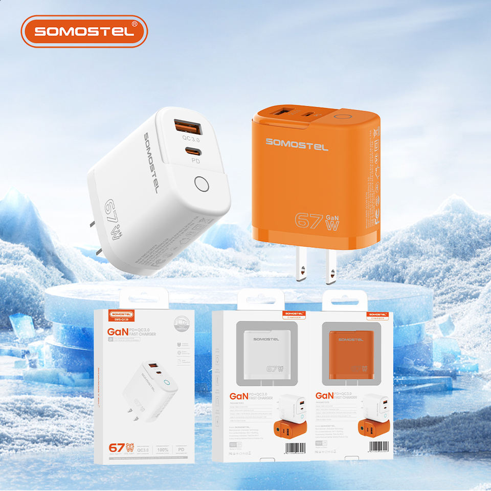 Chargeur rapide USB C PD 67W à double port US/UE avec lumière LED, matériau GaN, QC3.0, pour téléphones Android