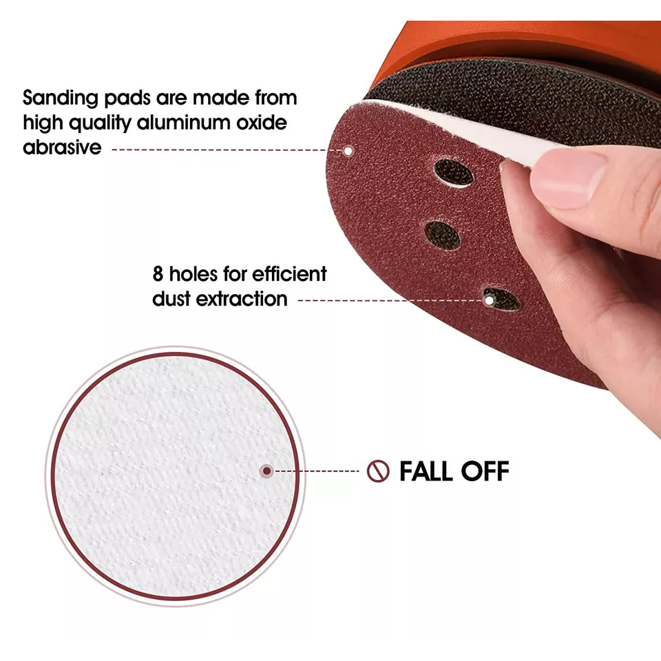 Stock local américain, livraison gratuite en 24h aux États-Unis, 50 disques de ponçage de 125 mm, grain 120, boucle auto-agrippante, 8 trous, pour ponceuse orbitale, plaquettes de papier abrasif