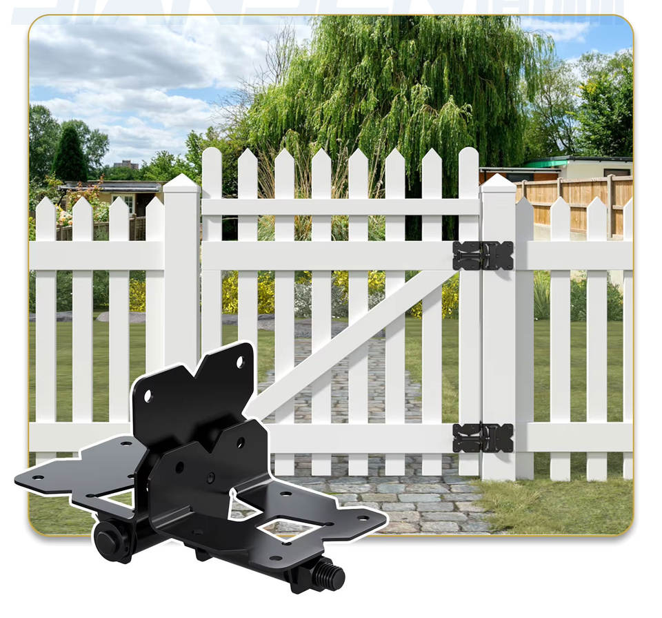 Kit de quincaillerie pour charnières de portail réglables SS304 en stock local aux États-Unis avec outil de réglage de l'ouverture, charnières à fermeture automatique pour portails en vinyle/bois