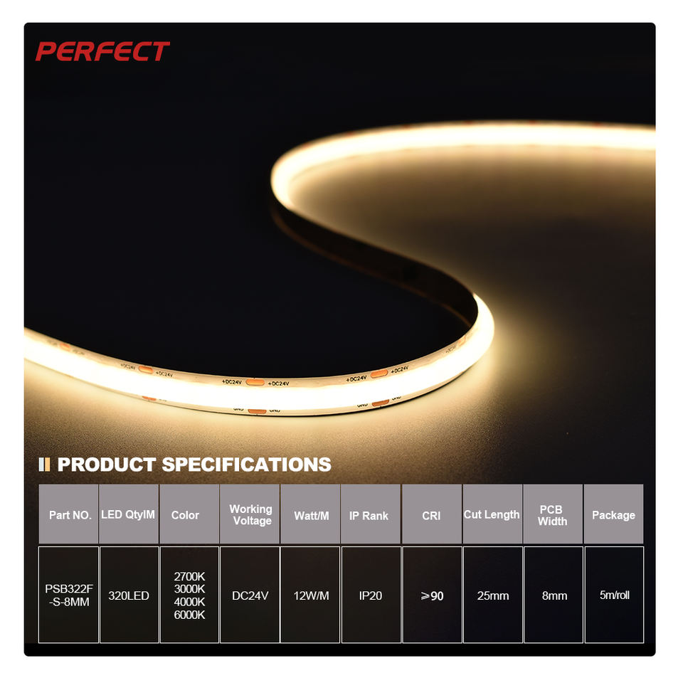 Bande LED SOB à haute luminosité flexible à vente chaude sur le marché américain, 320 LED/M, CRI élevé Ra≥90 - DC24V Multi-CCT pour la décoration intérieure