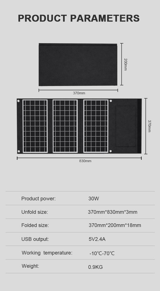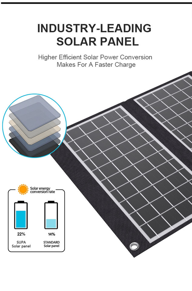Panneaux solaires portatifs du marché américain Panneaux solaires PV extérieurs pour le camping 30W haute efficacité 100W 370*200*20 MM monocristallin SUPA