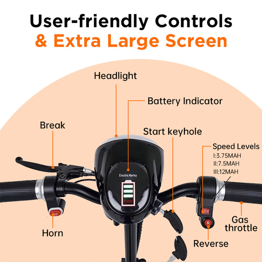 Trottinette pliable T20 36V à quatre roues avec 3 vitesses pour appartement, idéale pour le rangement compact à domicile – Expédition depuis l'entrepôt américain