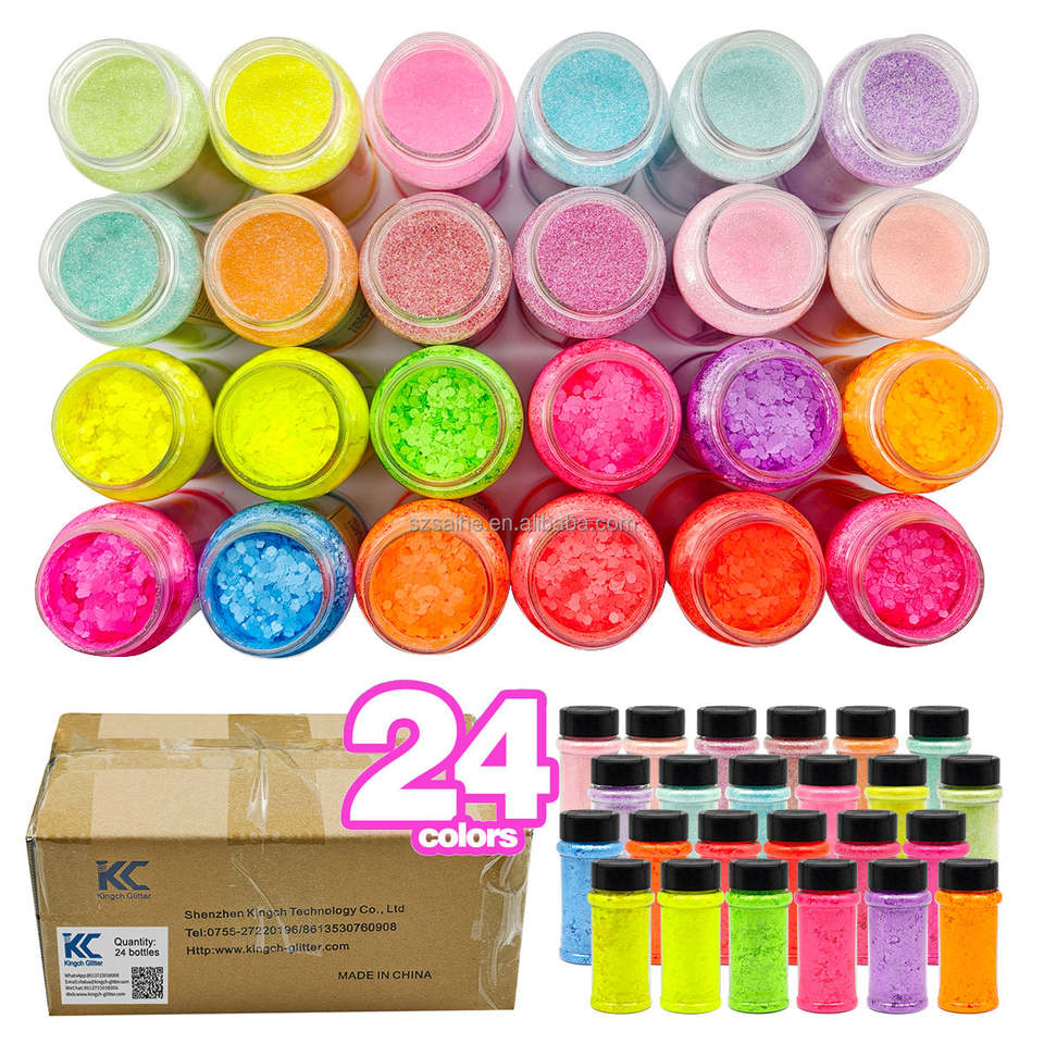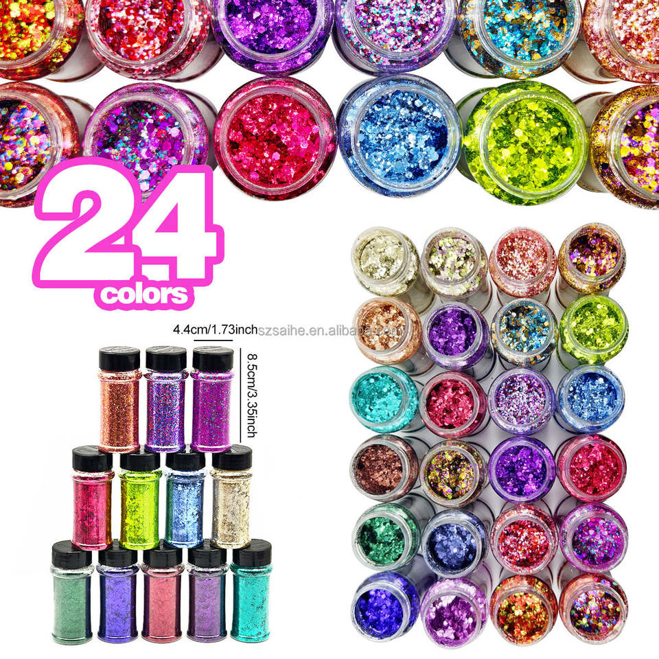 Entrepôts américains, flacon de 2 oz, paillettes holographiques laser de tailles variées, 24 couleurs par lot, pour globe à neige, gobelet, festivals de musique