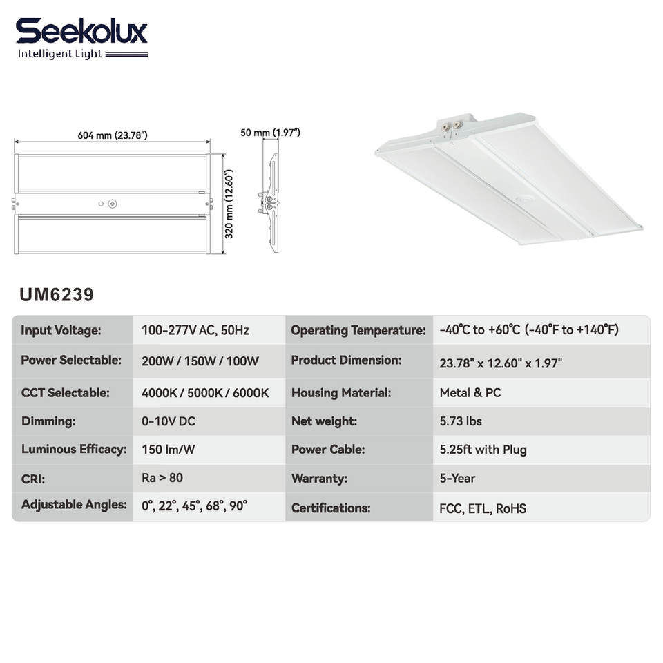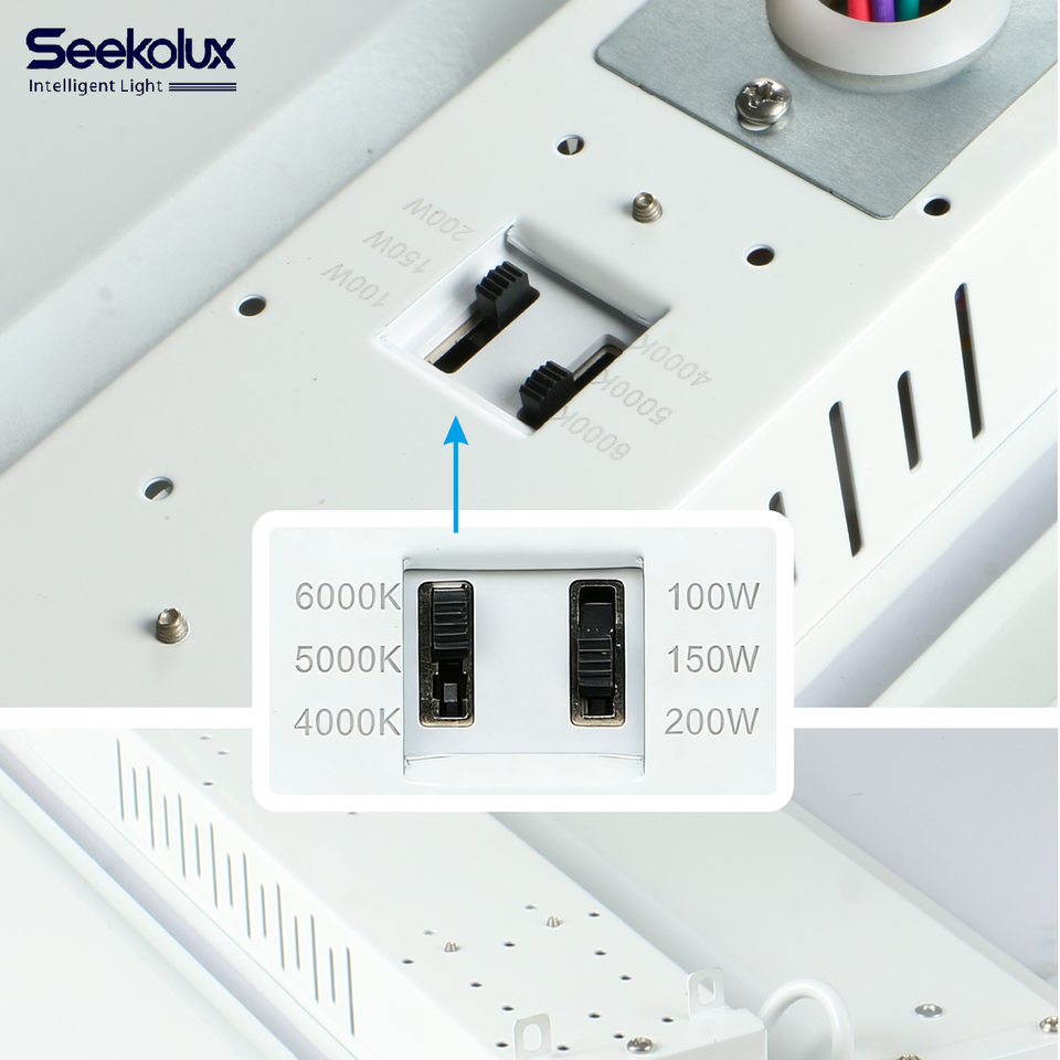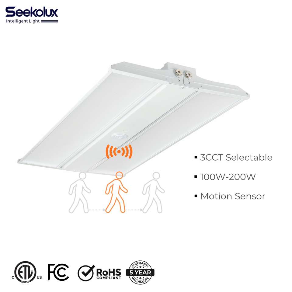 En stock aux États-Unis : Projecteur LED industriel suspendu linéaire KLight 100W-300W pour entrepôt, usine, salle de sport, atelier, avec variation de température de couleur (CCT) et fonctions de gradation, certifié ETL FCC