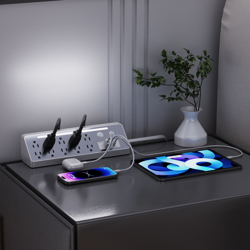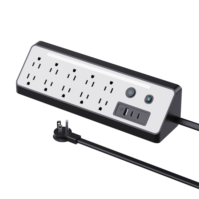 Multiprise de bureau standard USA/Amerique, 10 prises avec cordon de 1,5 m, lampe LED sous le bureau, pour la maison, certifiée ETL/UL/FCC