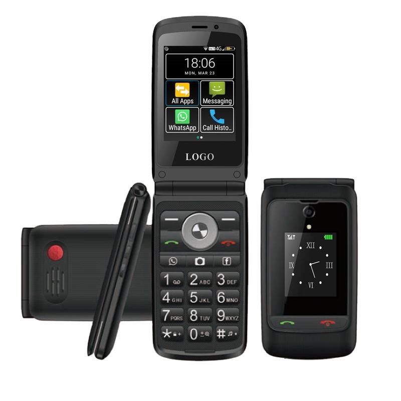 Téléphone portable à rabat 4G Android aux États-Unis en vente chaude avec écran tactile de 2.8 pouces 1 Go + 8 Go double SIM batterie de 1450mAh téléphone à clavier intelligent pour les personnes âgées