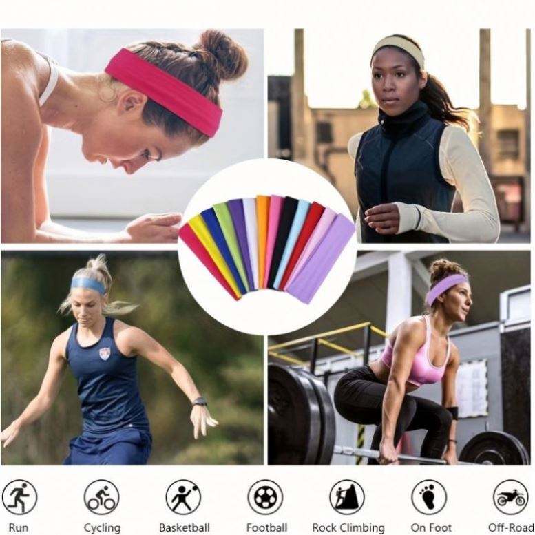 Bandeau de sport élastique uni pour yoga, accessoires capillaires absorbants, bandeau large à bord large, style USA Pop