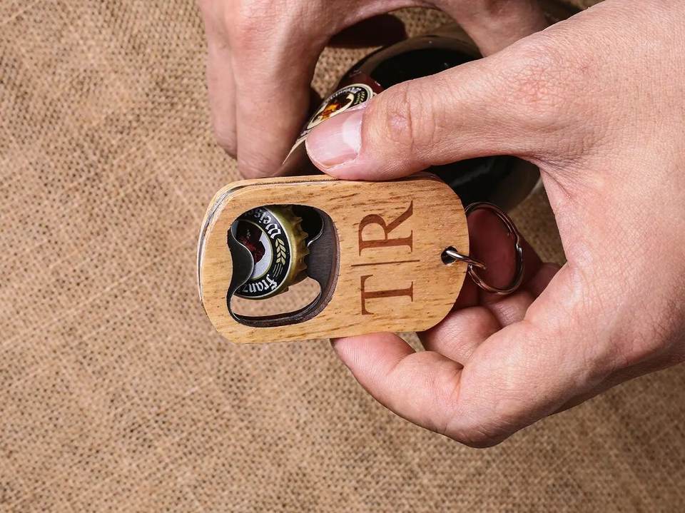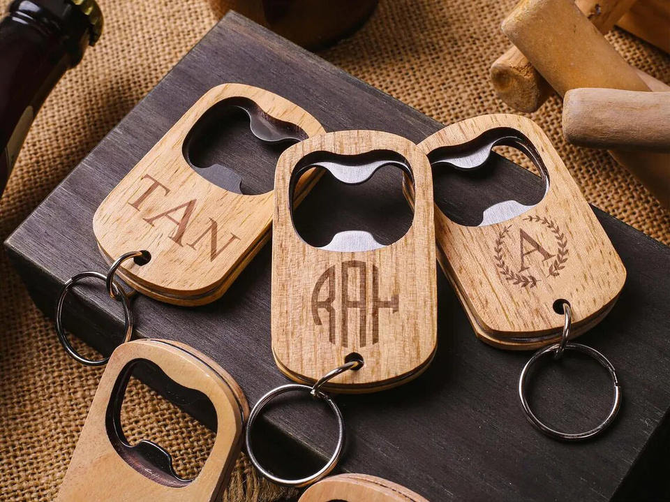 USA RTS Faveurs de mariage personnalisées Porte-clés en bois-Ouvre-clé de bouchon de bière Blancs d'invités vierges