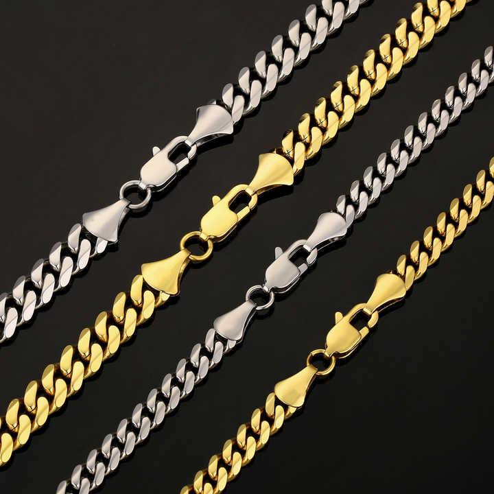 USA Chaîne en Or Véritable 14K Rempli Bijoux Anti-ternissement Acier Inoxydable 3mm 5mm 8mm Collier Maille Cubaine Miami pour Hommes Femmes