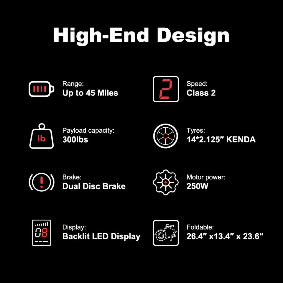 Caractéristique:Pliable, LED D'affichage, Freins à disques, Gros pneus, Pédale aider, Batterie amovible