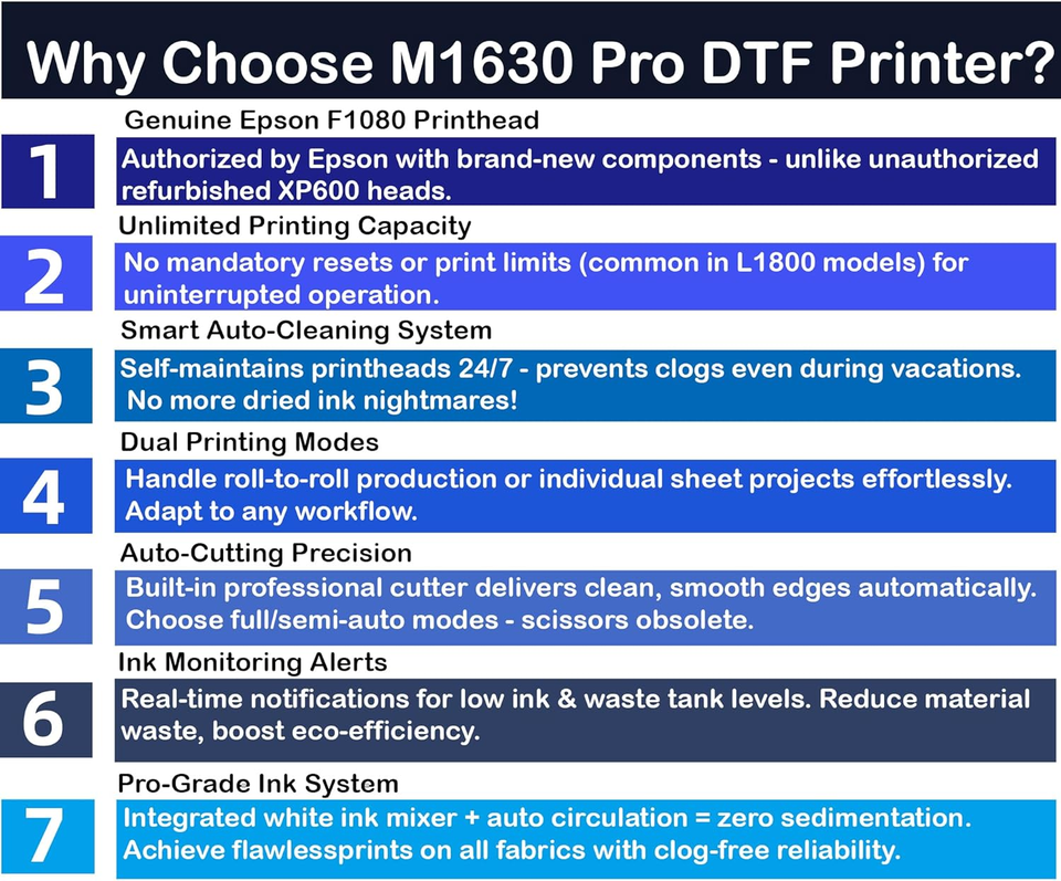 Entrepôt USA - Pack DTF Lancelot Auto-Maintenance M1630 Pro avec découpeuse automatique et circulation d'encre blanche pour impression de t-shirts DIY