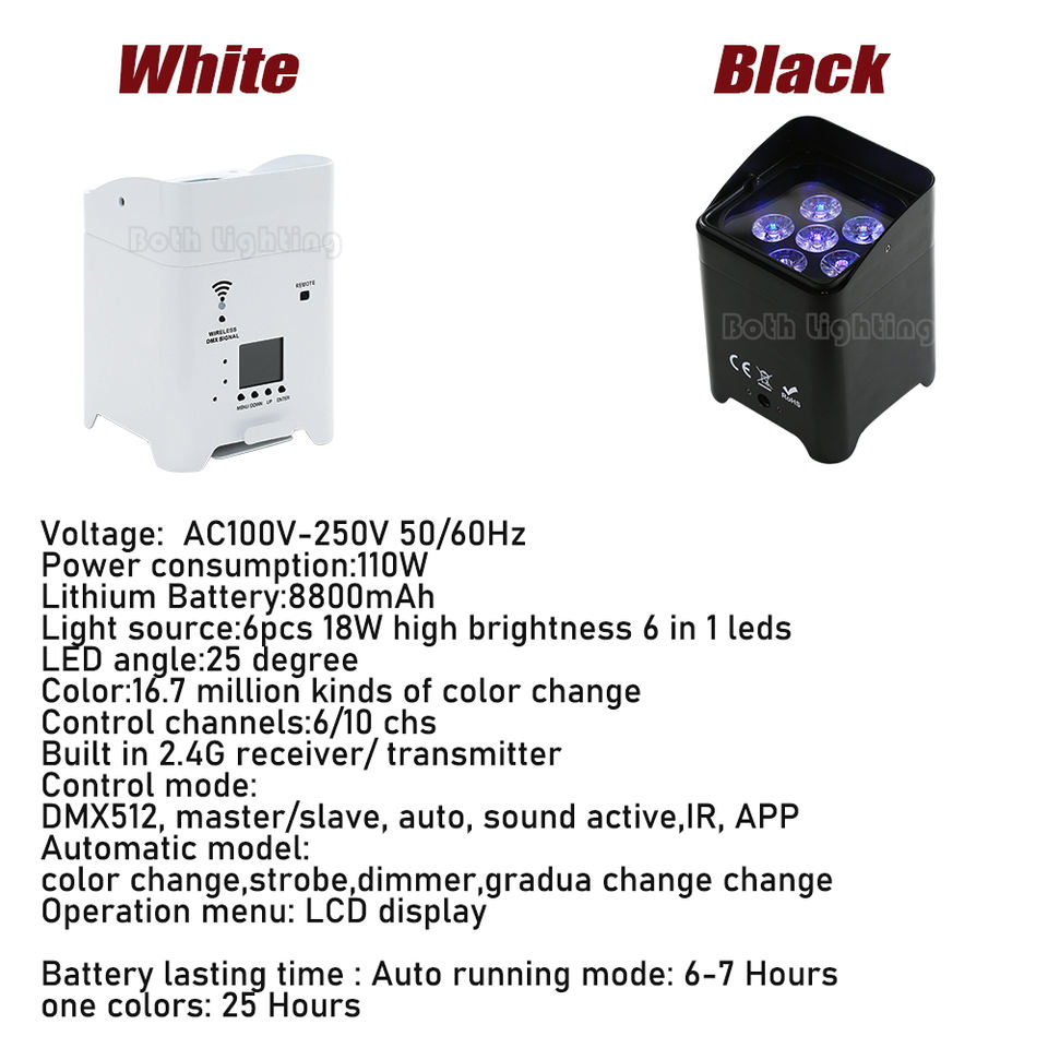 Entrepôt aux États-Unis 10 pièces couleur blanche avec étui Smart DJ S6 up éclairage batterie sans fil Dmx lumières LED 6*18w événement de fête de mariage