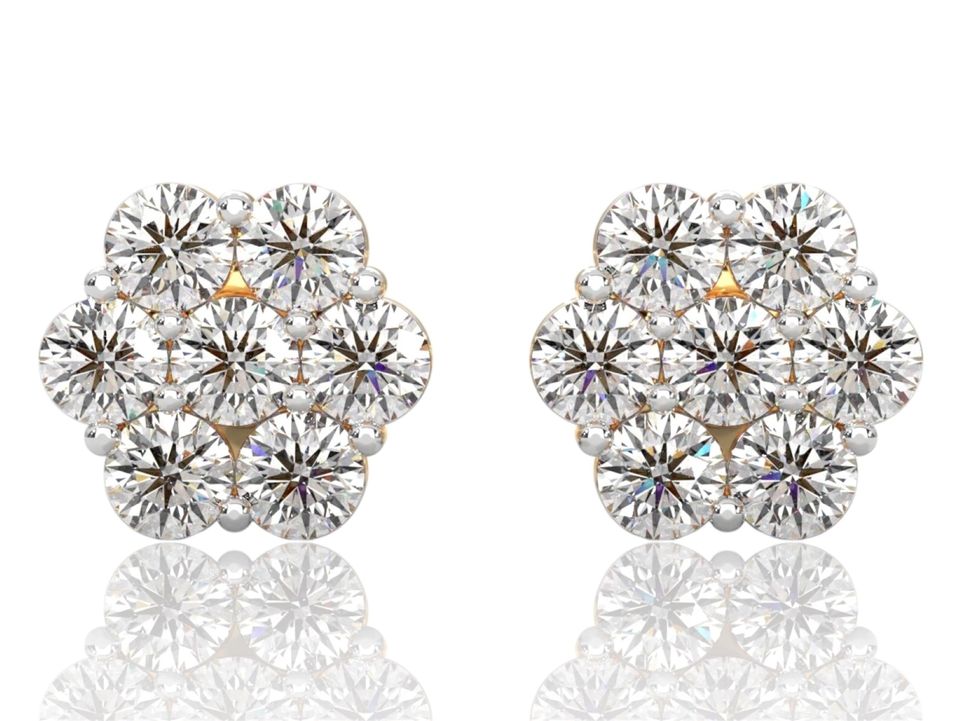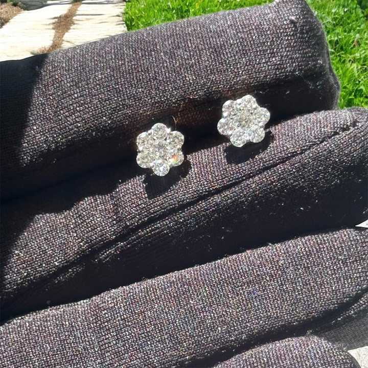 Expédition locale depuis l'entrepôt américain : Boucles d'oreilles clous à visser motif bouquet de fleurs, plaqué or S925, Moissanite qui passe le test du diamant