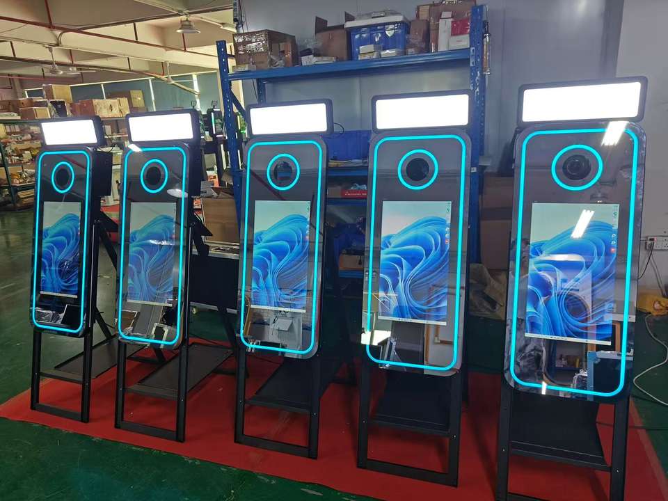 Photomaton avec écran tactile LCD, cadre LED, logiciel IA pour smartphones et iPad, stocké aux États-Unis