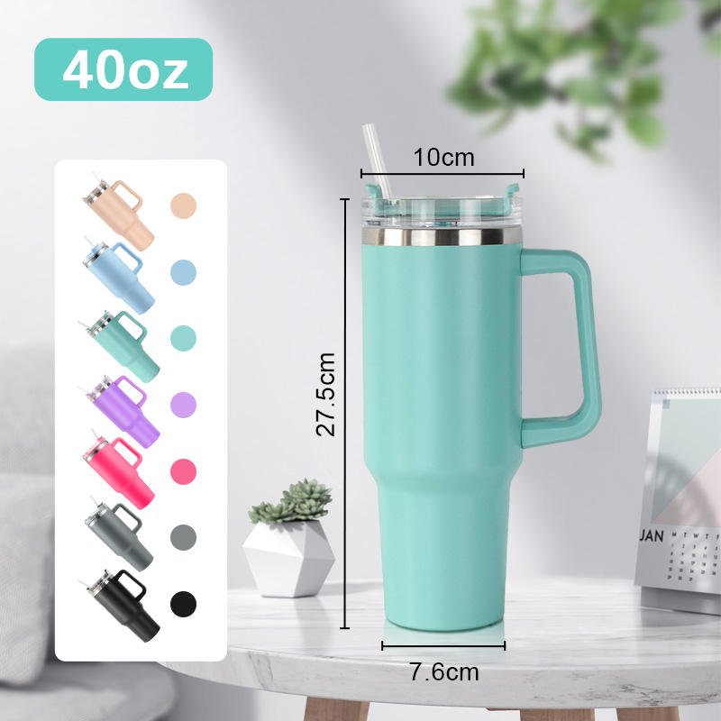 Bouteille d'eau isotherme en acier inoxydable de 40 oz avec logo personnalisé, gobelet de voyage pour voiture avec poignée, couvercle et paille – Expédition depuis l'entrepôt américain (RTS)