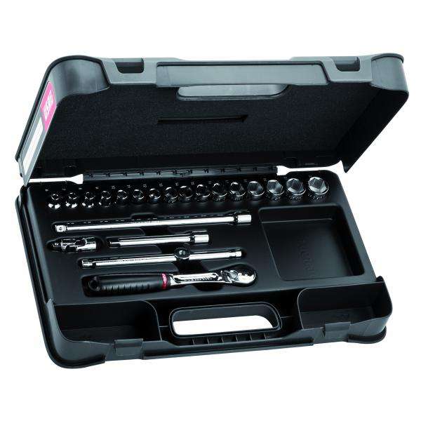 USAG - U06060204 Assortiment avec douilles bihexagonales et cliquet de 3/8 ''dans une boîte à matériaux (21 pièces) ENSEMBLES DE CLIQUET ET DE DOUILLES