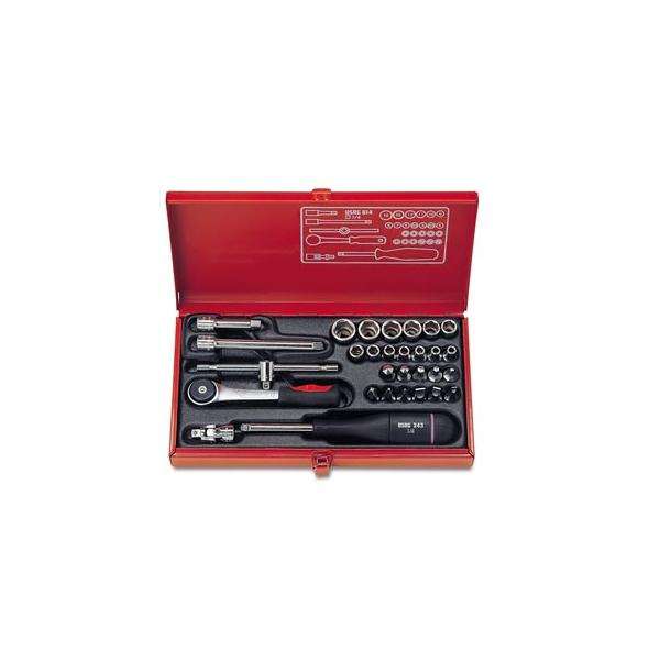 USAG - U06140011 Assortiment en boîte en tôle d'acier avec cliquet 1/4 ''(30 pièces) -ENSEMBLES DE CLIQUET ET DE DOUILLES EAN 8010239104624 1/4"