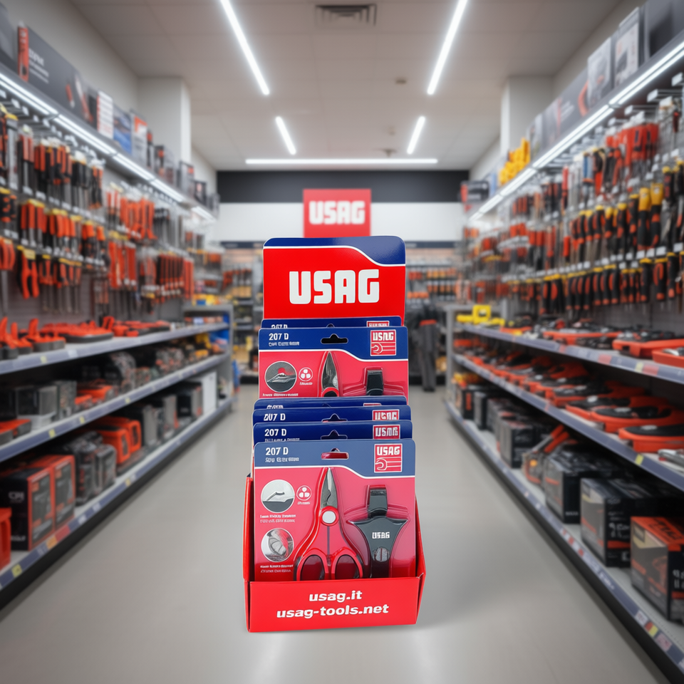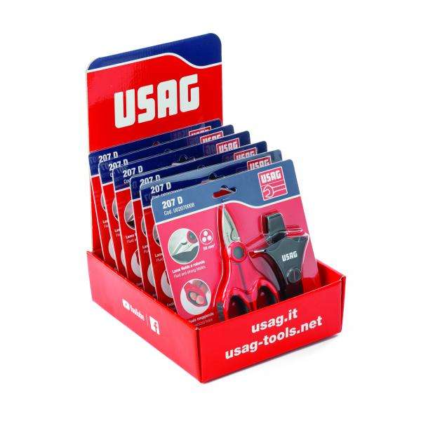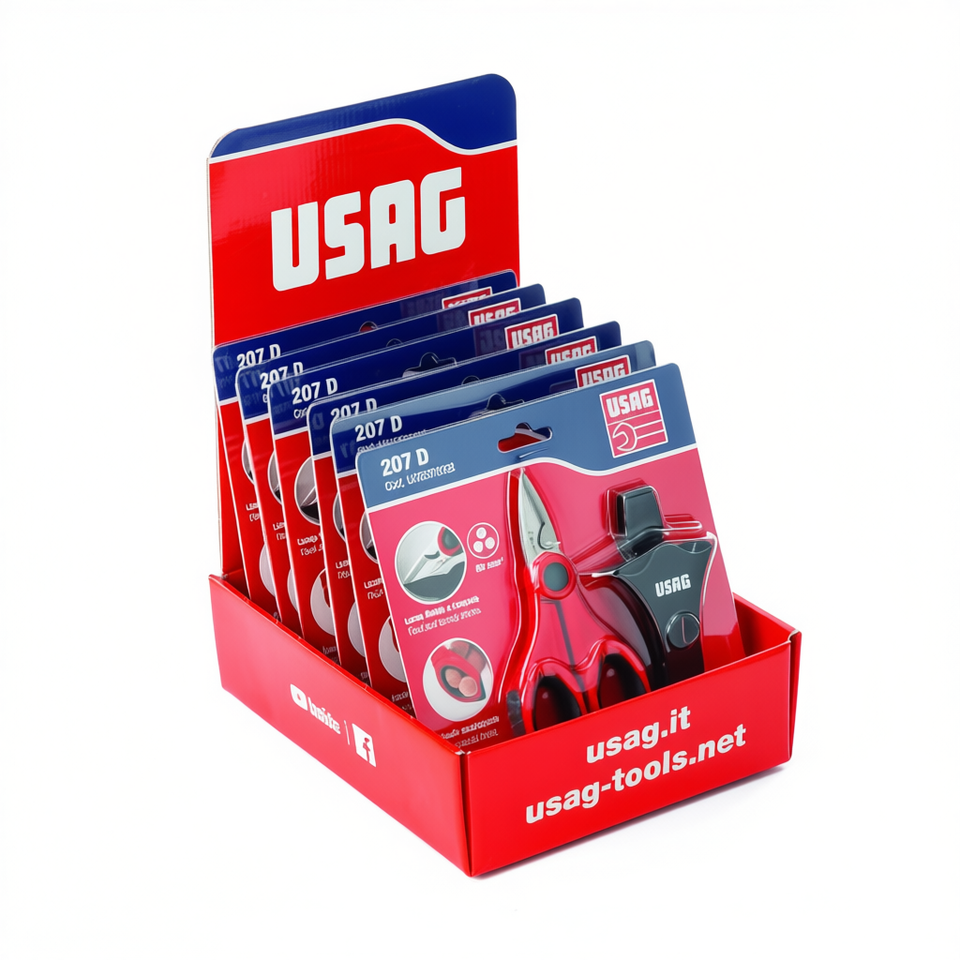 Présentoir de comptoir USAG avec 6 ciseaux et 207 ciseaux et cisailles professionnels
