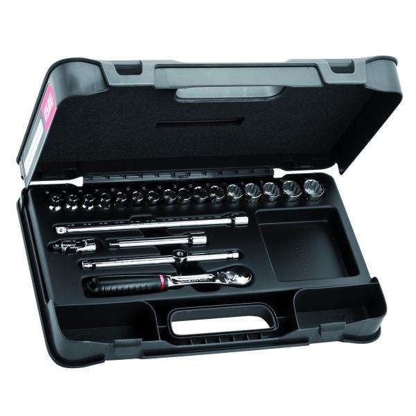 USAG - U06060203 Assortiment avec douilles bihexagonales et cliquet de 3/8 ''dans une boîte à matériaux (21 pièces) ENSEMBLES DE CLIQUET ET DE DOUILLES