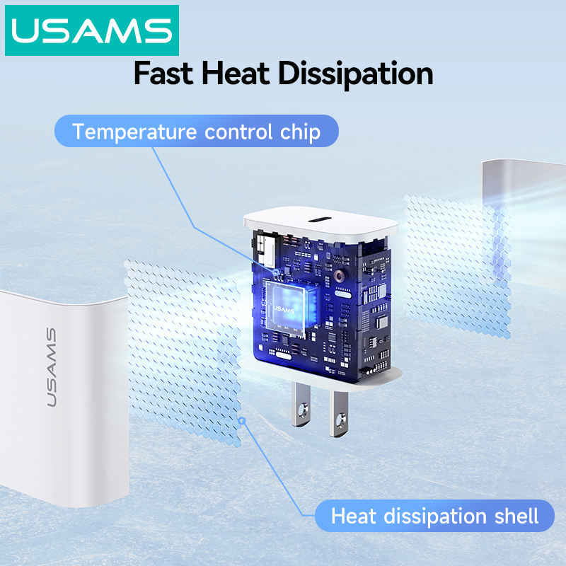 USAMS-Chargeur de téléphone USB CC228, QC3.0, mural, USB Type C GaN, pour iPhone 14 13 12 Pro Max, Macbook Tablet Laptop