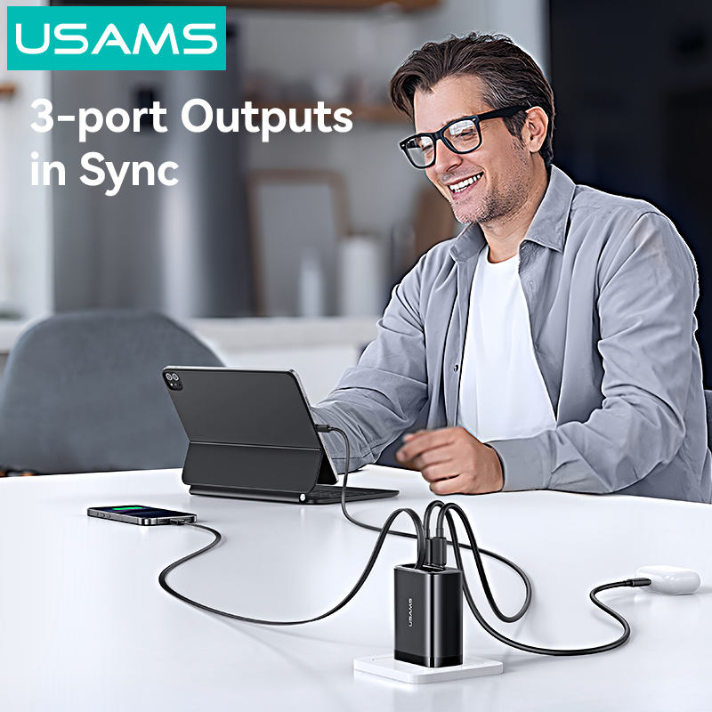USAMS CC297 PD 30W Usb C Type-c Charge rapide Prise américaine Chargeur mural multifonction pour téléphone portable et tablette pour iphone 16 15 14 13 Pro