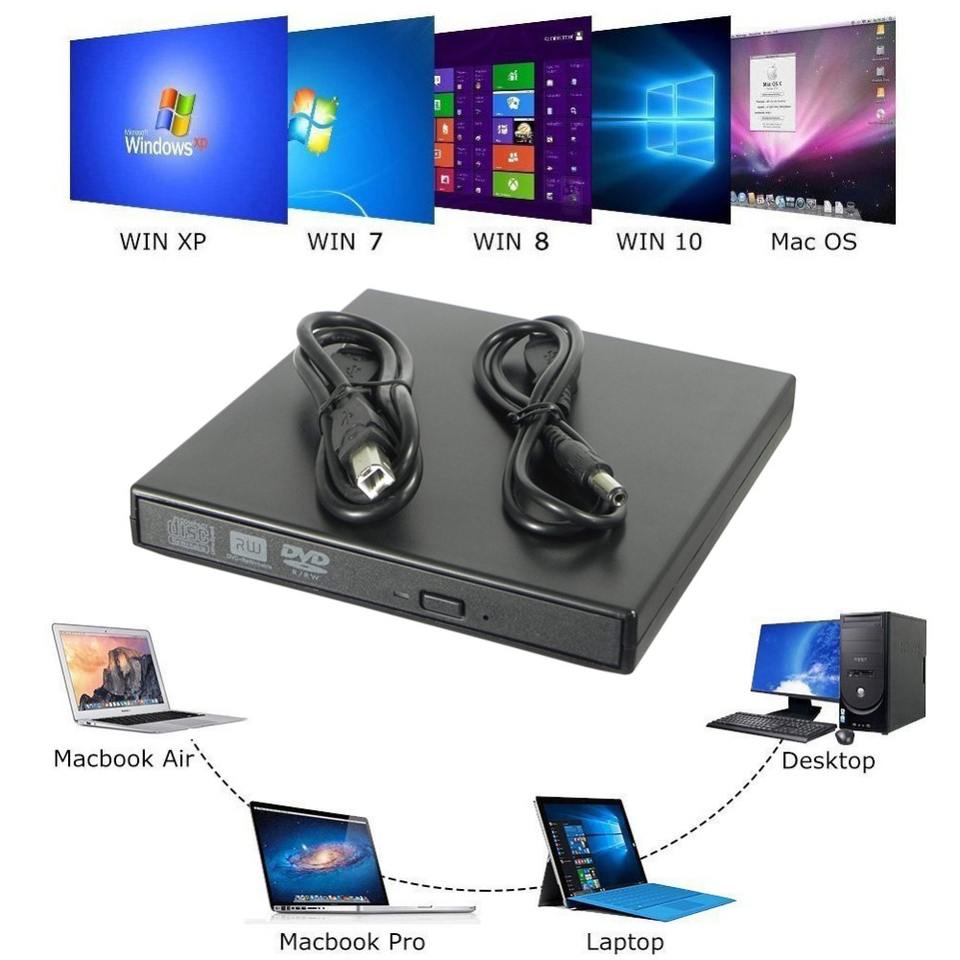 Lecteur de CD DVD externe portable mince USB 2.0 Lecteur de CD-RW Graveur de DVD-RW Lecteur pour ordinateur portable Ordinateur de bureau