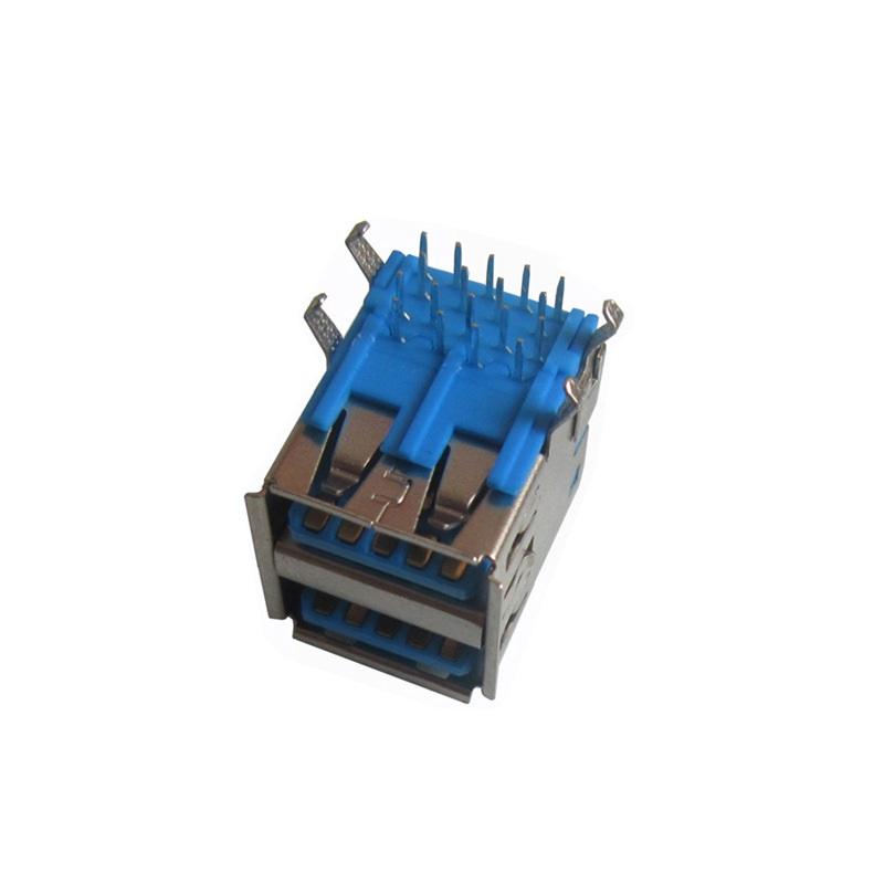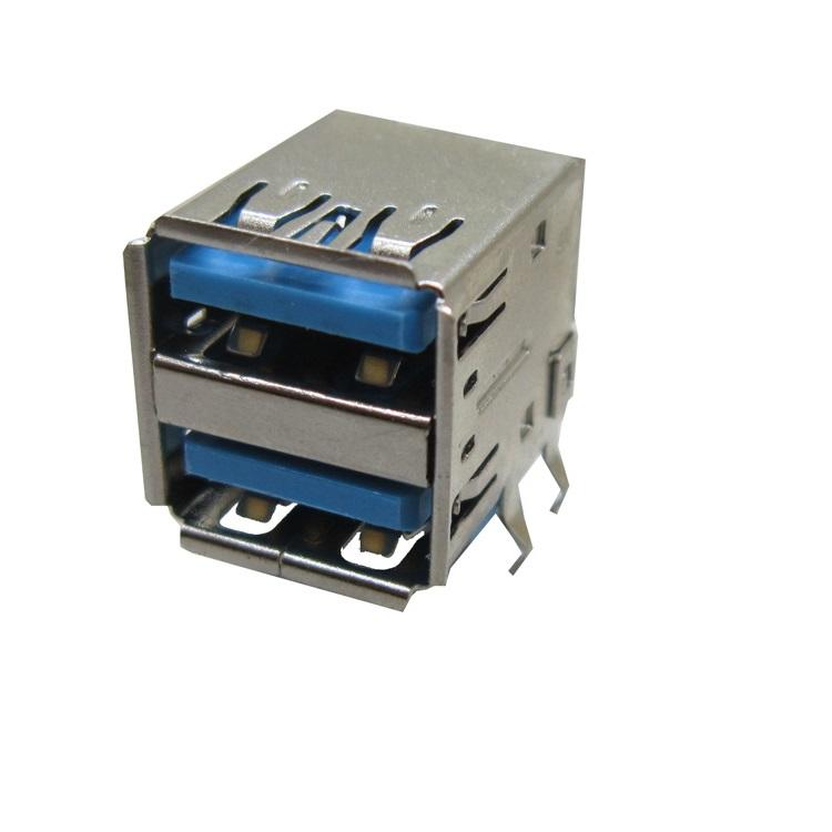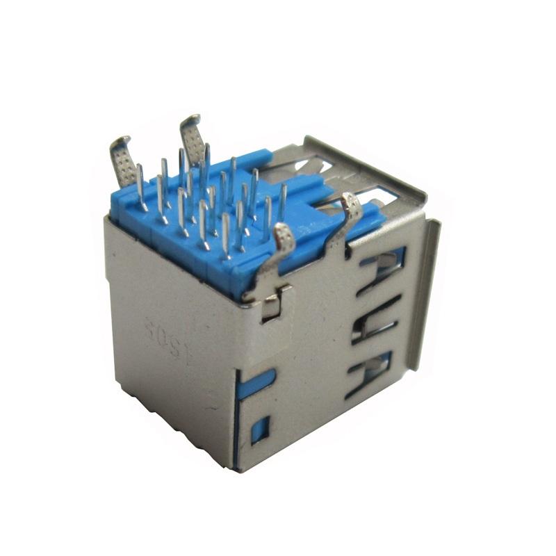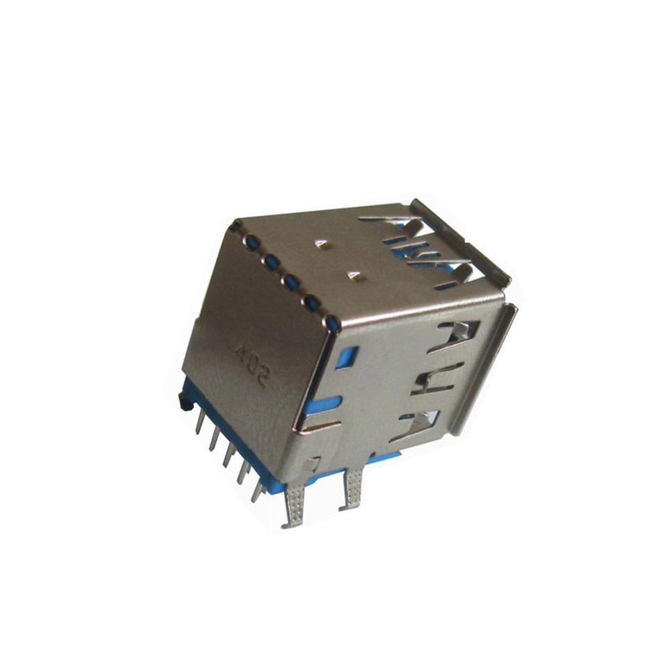 USB-2A-RL10-3 empilé USB 3.0 Type A Trou traversant Ange droit