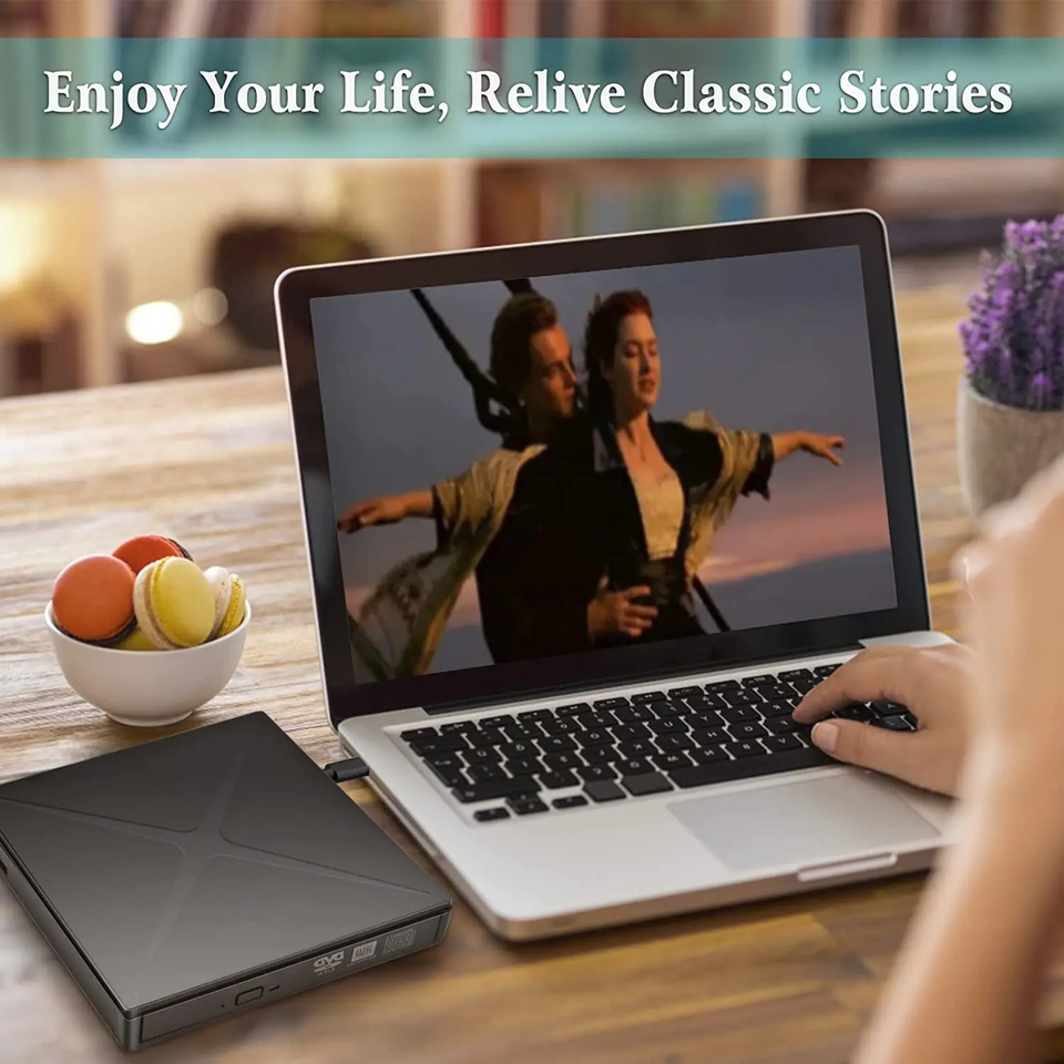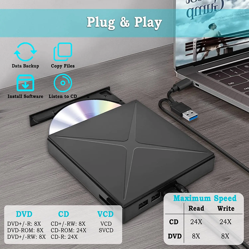 USB 3.0/Type-C Portable CD DVD RW Drive DVD Player CD ROM Burner External Optical Drive with TF/SD Card Slots for Desktop/Laptop