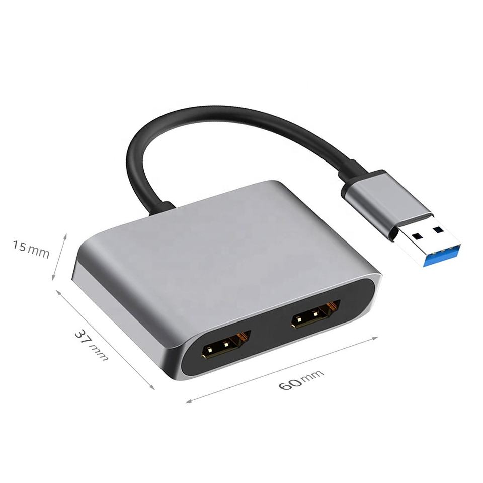 Adaptateur USB 3.0 vers double HDMI-carte vidéo et graphique externe-USB type-a vers HDMI adaptateur d'affichage à double moniteur