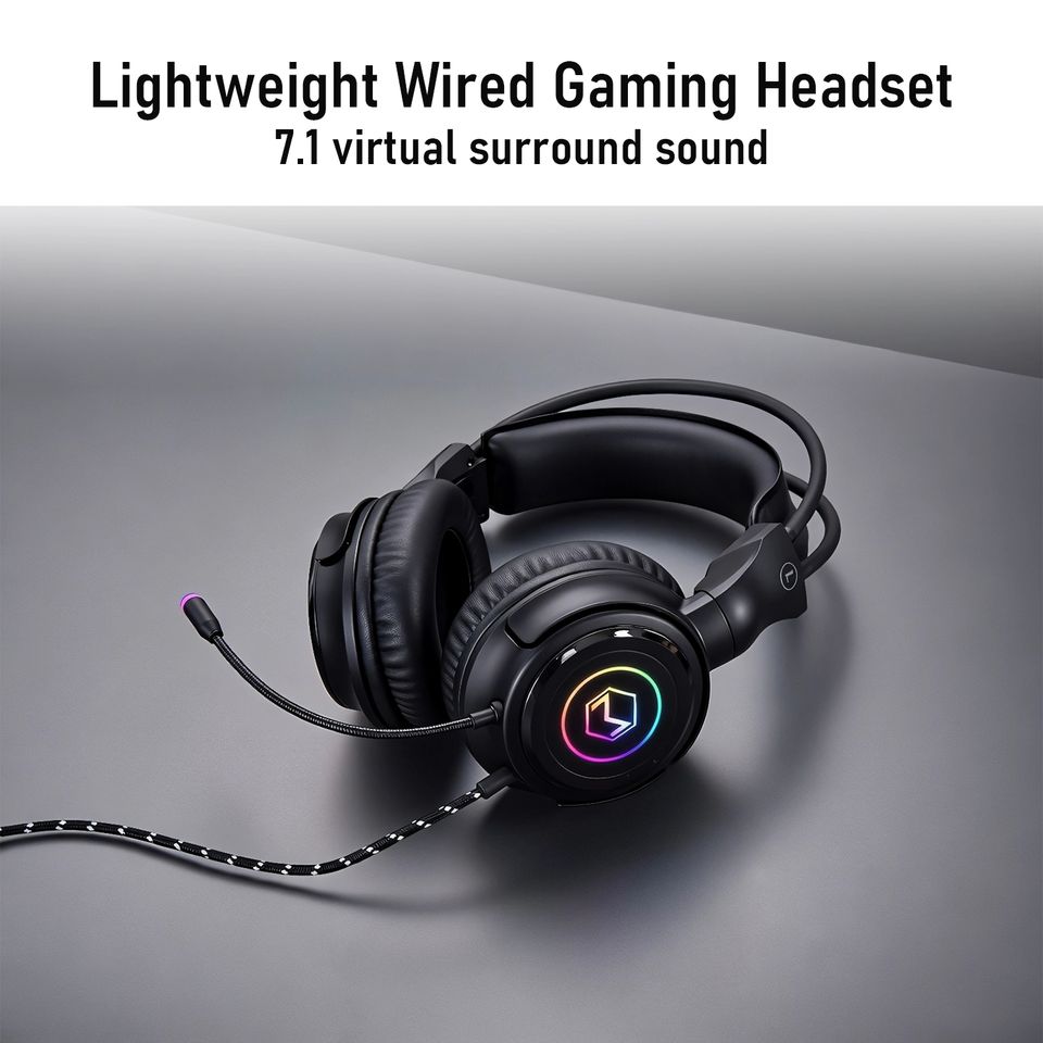 Casque de jeu filaire USB 3,5 mm avec micro à suppression de bruit, éclairage RGB, contrôle du volume stéréo pour PC, PS4, PS5, Xbox
