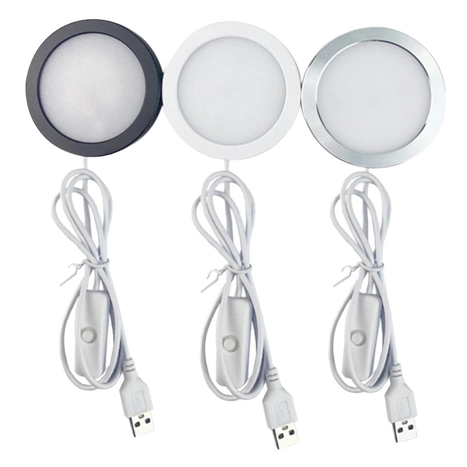 Lumière de placard LED USB 3 Watts SMD2835, blanc froid, blanc chaud, blanc neutre, spot de plafond avec interrupteur, câble 5V, corps en plastique, montage en surface